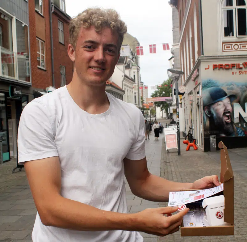 Nicklas Krogh Lynge på rundtur til byens butikker i Algade.