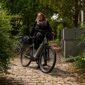 Susanne cykler så meget som muligt på sin elcykel, og hun har ca. 20 km i skole. Hun elsker at cykle og elsker sin cykel. Hun foretrækker at cykle i skole og elsker at cykle langs vandet. Hun synes, det er meget nemmere at komme rundt, når hun har cyklen med.