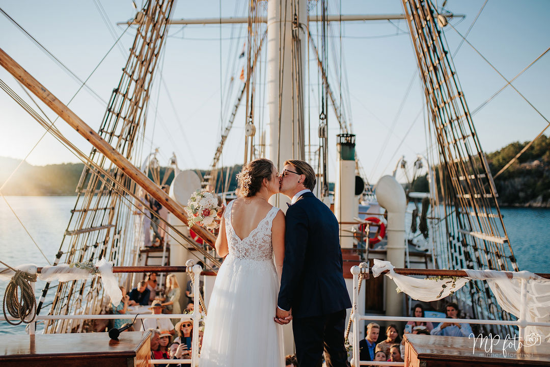 Vielserne foregår i skibets historiske og maritime rammer, hvor master, sejl og Aalborg Havnefront danner en særlig og stemningsfuld kulisse for den borgerlige vielse.