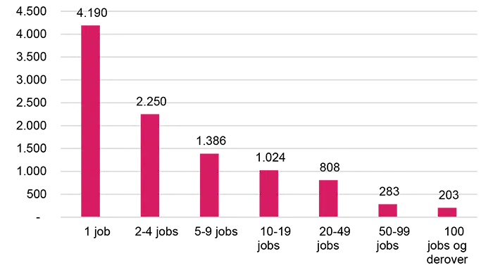 - De fleste virksomheder har kun én medarbejder (4.190)