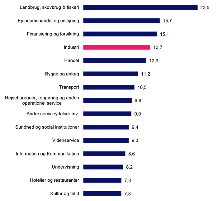 - 18 procent af alle jobs i den private sektor er i Industrien
