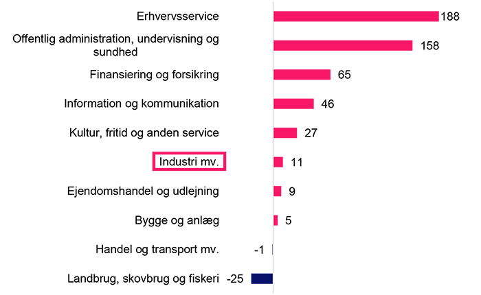 Figur: Udvikling i antal jobs fordelt på brancher.