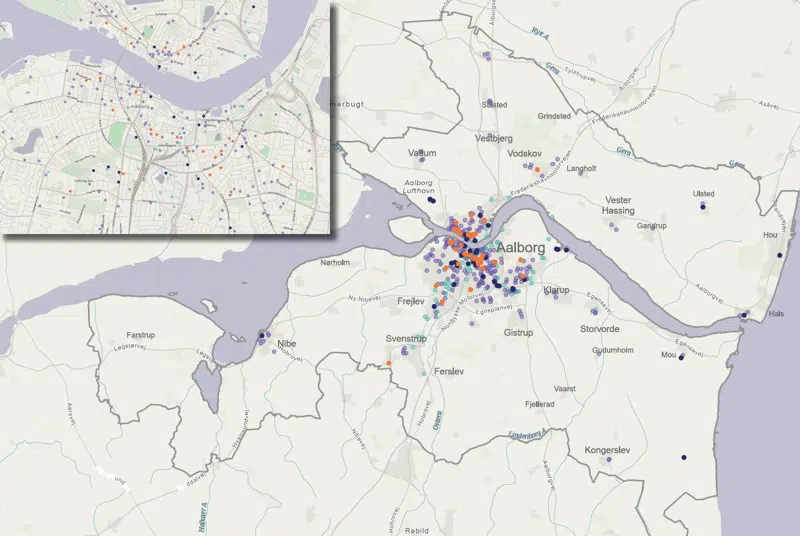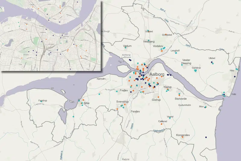 I alt vil der i løbet af 2022 - 2024 opsættes 174 ladestandere på kommunale arealer i Aalborg Kommune. Det planlægges at udrulle ladestanderne i to etaper. Disse fremgår af kortet nedenfor.