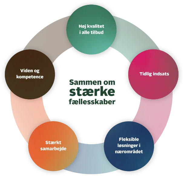 I stærke fællesskaber er der plads til alle. Børn og unges trivsel, læring, dannelse og udvikling sker i disse fællesskaber, som de voksne sætter rammerne for. Relationer og venskaber er afgørende for barnet og den unges oplevelse af at være en del af fællesskabet og blive respekteret og lyttet til.