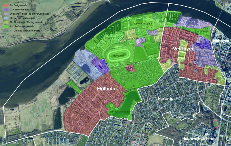 Områderne ved Vestbyen og Mølholm er tæt forbundne af de rekreative fjordarealer, og byudviklingen skal derfor ses i en sammenhæng. Bydelene står overfor en række forandringer og muligheder, som byudviklingsplanen udfolder. Sammenhængen på tværs af bydelene skal være gennemgående for udvikling af de rekreative områder, mobilitet, klimatilpasning, byrum og ny bebyggelse.